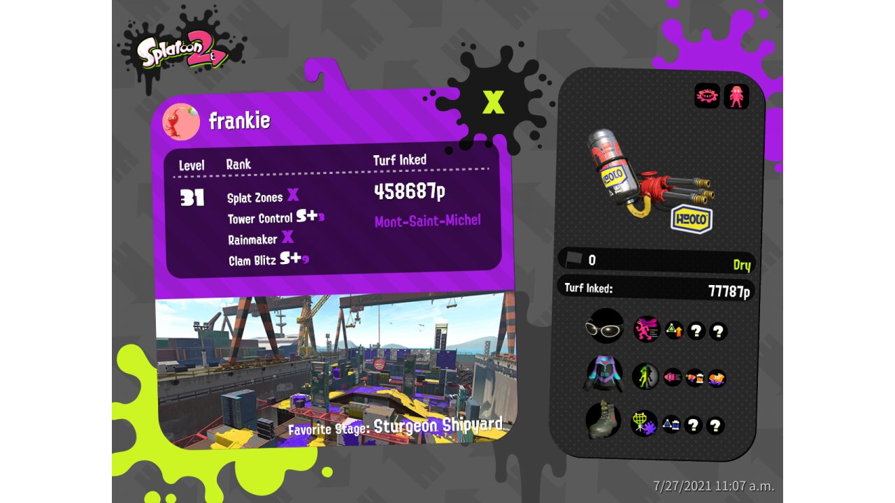 | Weapon | Custom Hydra Splatling ( Ink Mine, Ink Armor) | |||||||||||||||||||||||||||||||||||||||||||