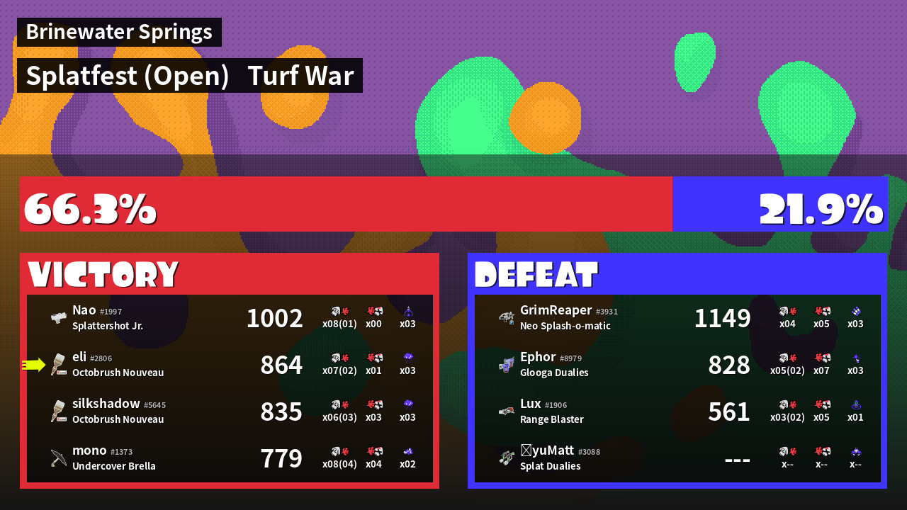 | Medals | #1 Enemy-Base Inker #1 Super Jump Spot #1 Ground Traveler | ||