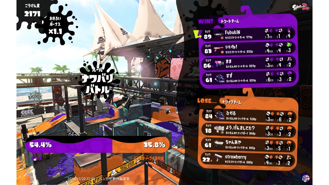 | Splatfest Title | トリート Champion 888 → トリート Champion 958 | ||||||||||||||||||||||||||||||||||