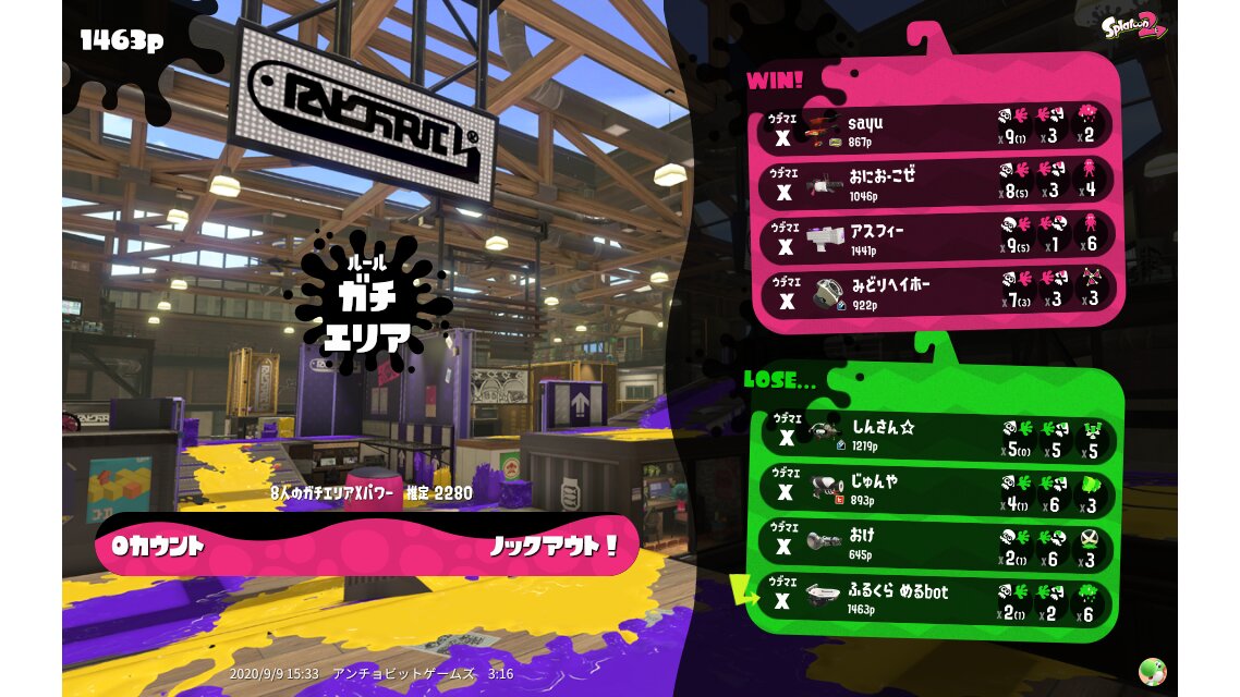 | Mode | Splat Zones - Ranked Battle | ||||||||||||||||