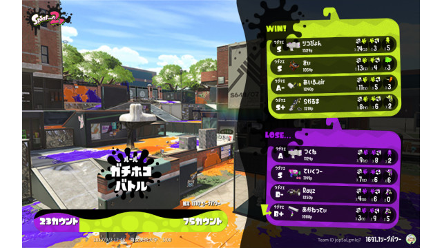 | Name | Weapon | Level | Rank | Inked | k+a/sp | k/d |