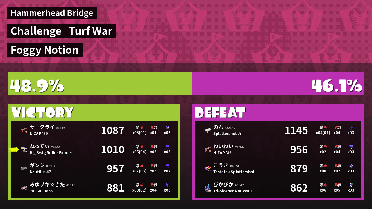 | Medals | #1 Enemy-Base Inker #1 Splat Assister #1 Base Defender | ||