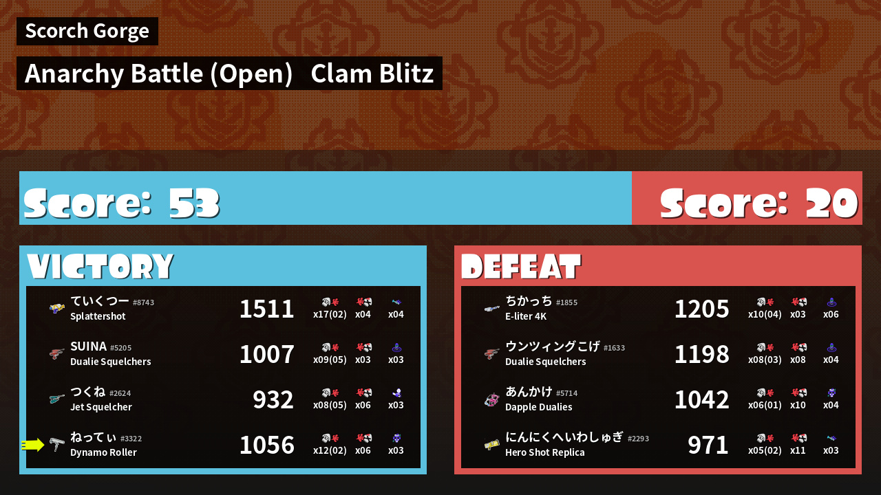| Mode | Clam Blitz - Anarchy Battle (Open) | ||