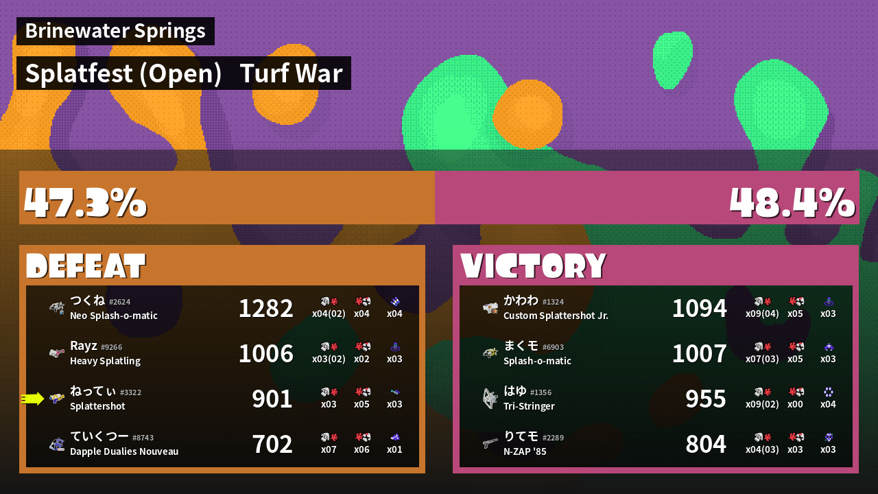 | Medals | #1 Trizooka User #2 Home-Base Inker #2 Enemy Splatter | ||