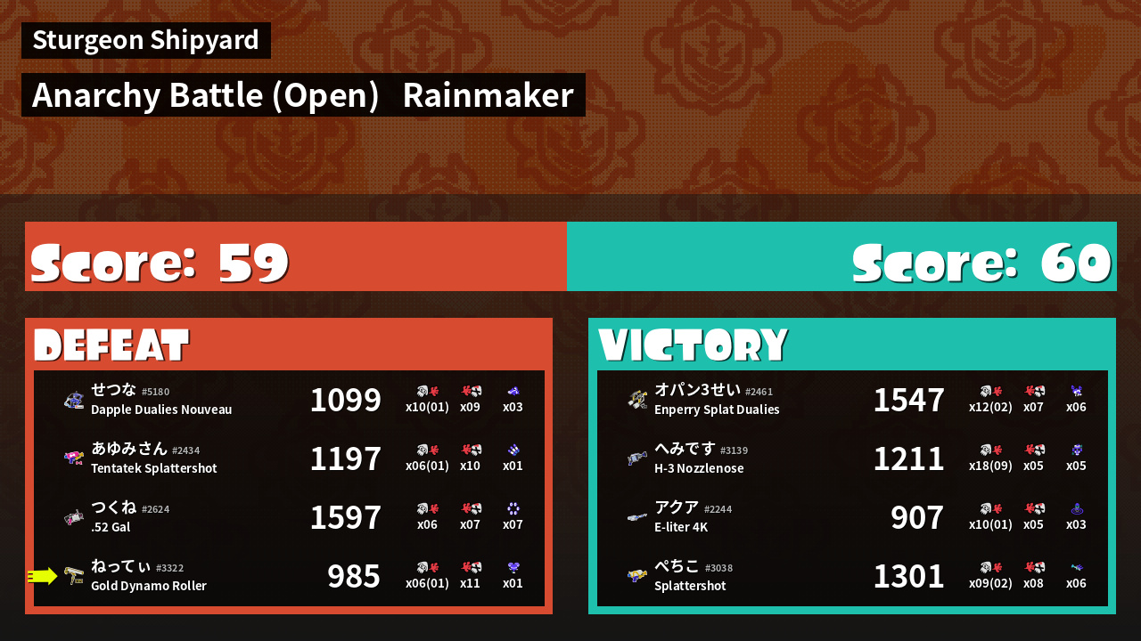 | Mode | Rainmaker - Anarchy Battle (Open) | ||