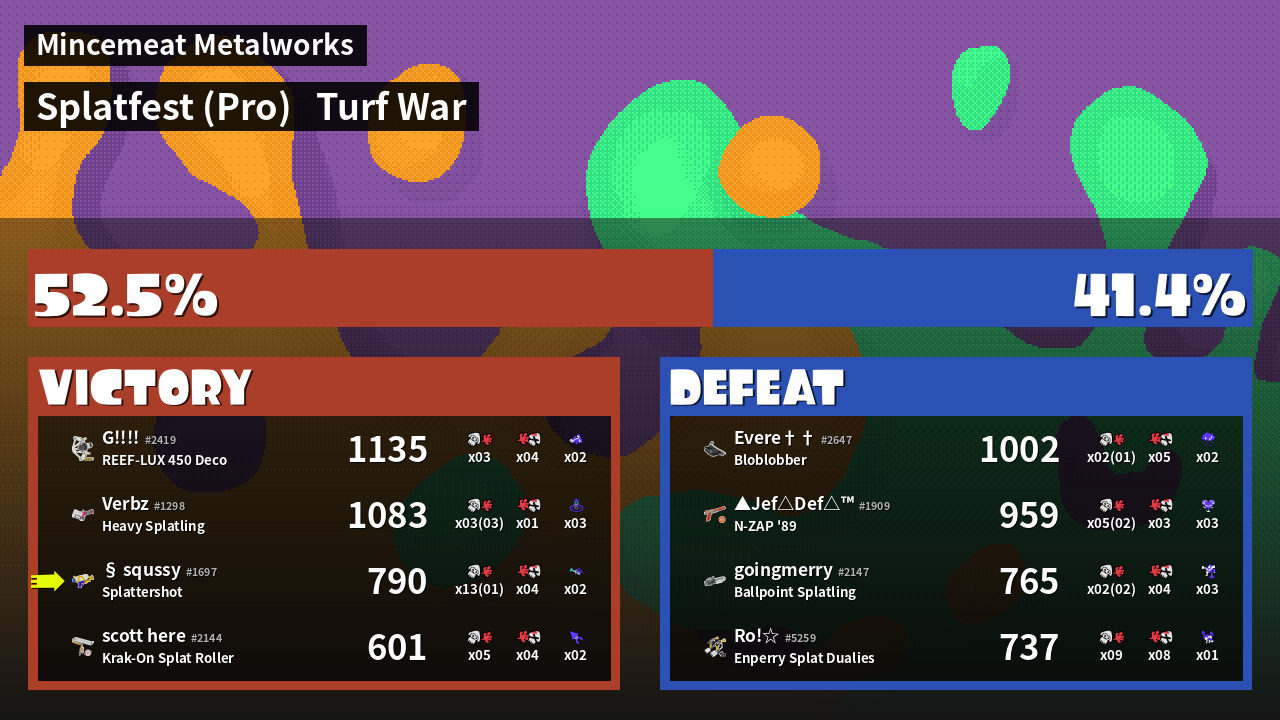 | Mode | Turf War - Splatfest (Pro) | ||
