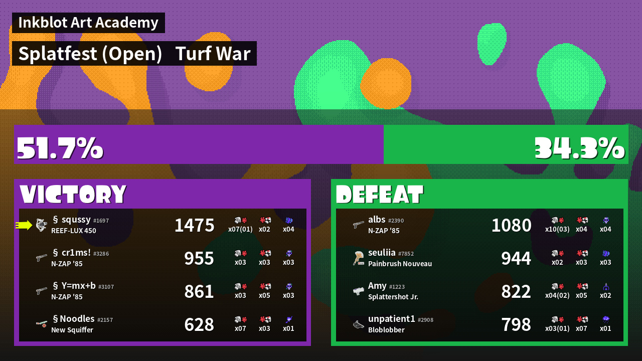 | Medals | #1 Overall Splatter #1 Turf Inker #1 Popular Target | ||