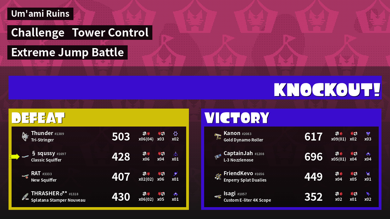 | Medals | #1 Overall Splatter #1 Popular Target #1 Enemy Splatter | ||