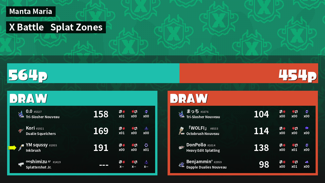 | Mode | Splat Zones - X Battle | ||