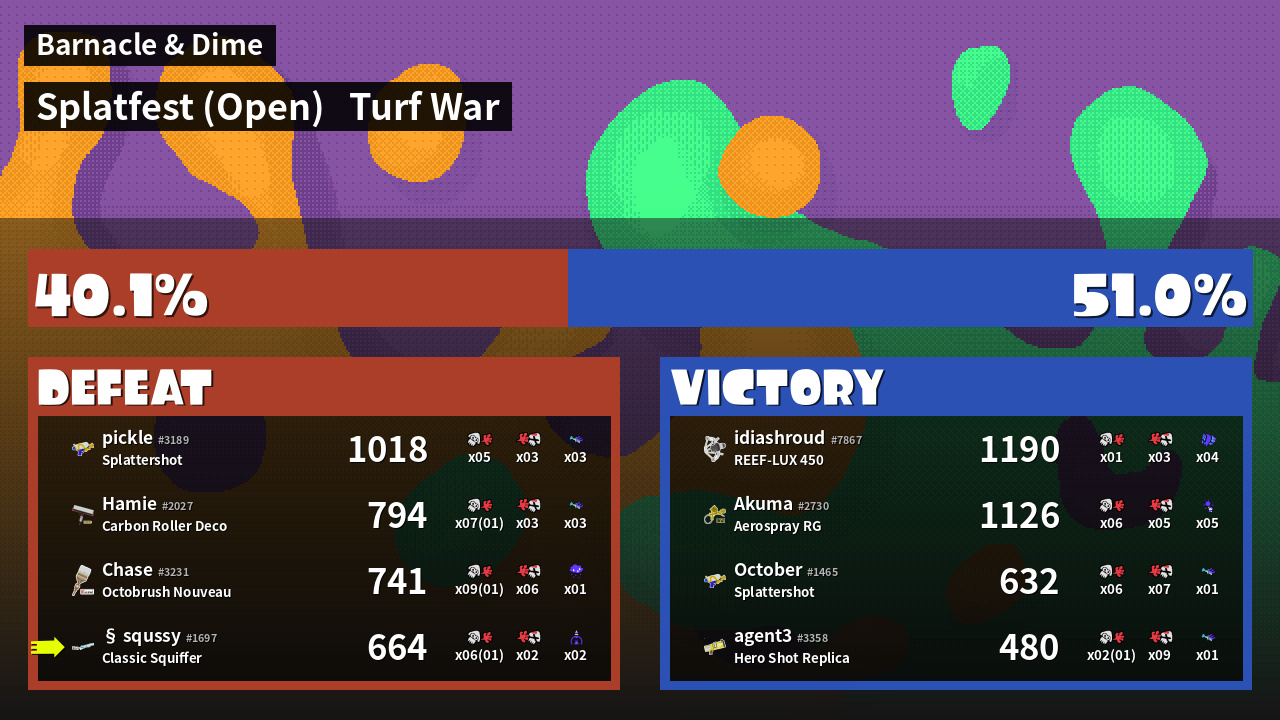 | Mode | Turf War - Splatfest (Open) | ||