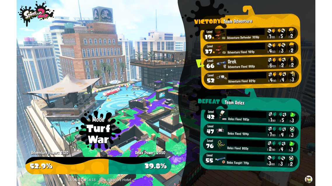 | Splatfest Title | Adventure Fiend 19 → Adventure Defender 3 | ||||||||||||||||||||||||||||