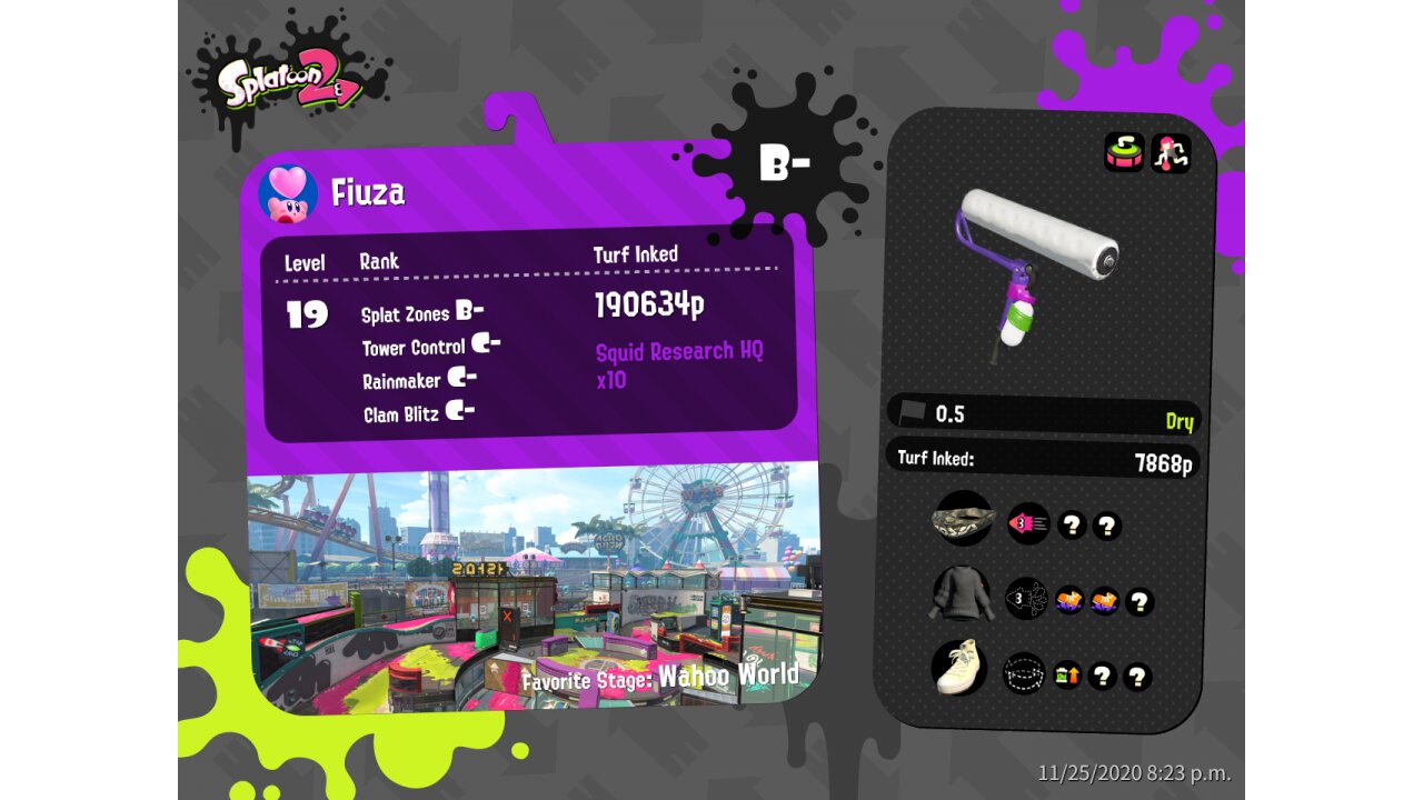 | Weapon | Splat Roller ( Curling Bomb, Splashdown) | ||||||||||||||||||||||||||||||||||