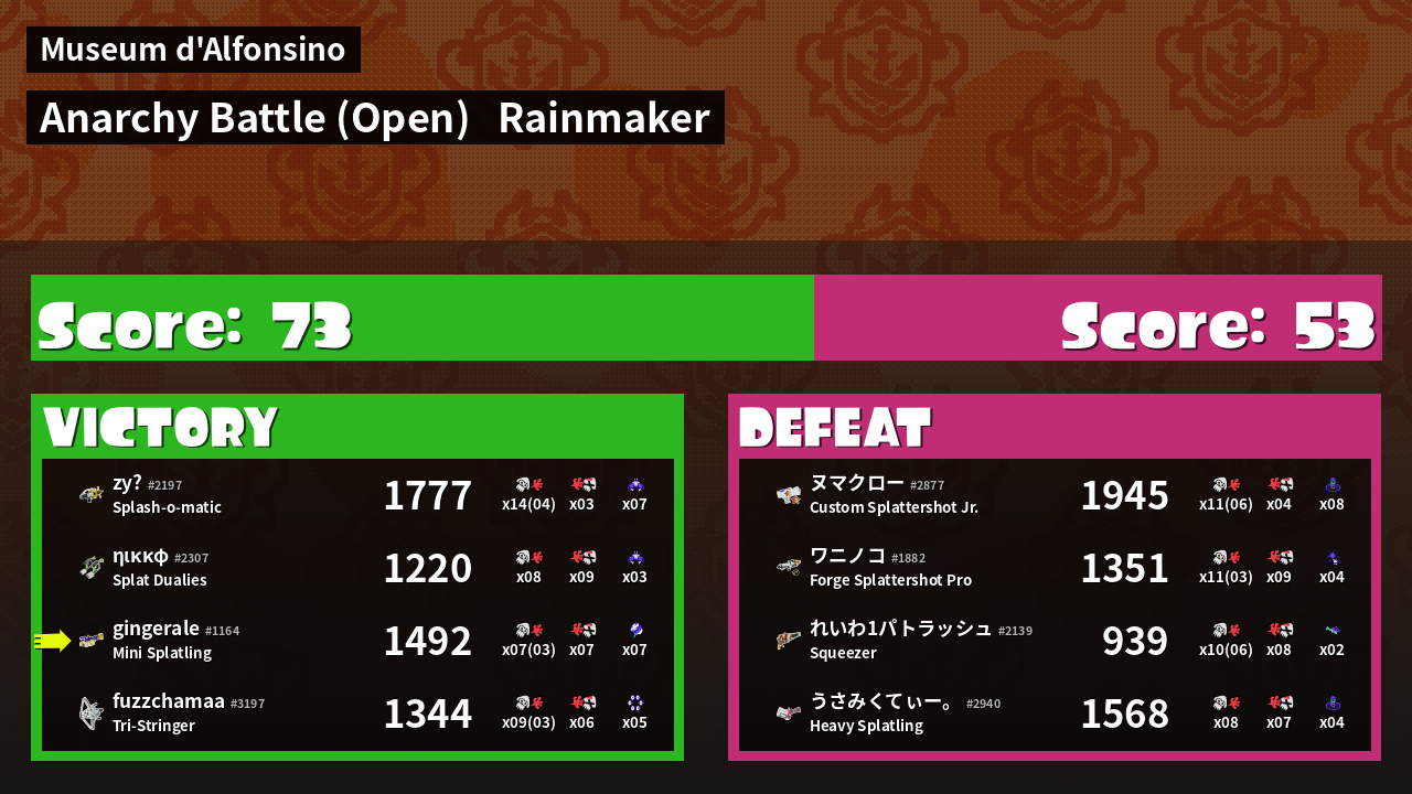 Results of gingerale's Battle