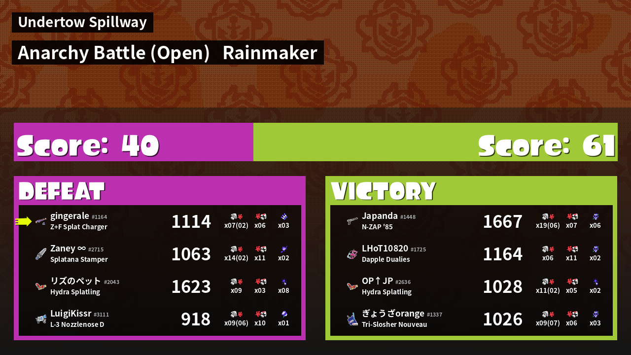 | Mode | Rainmaker - Anarchy Battle (Open) | ||