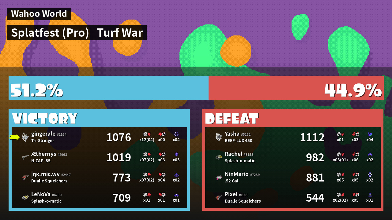 | Mode | Turf War - Splatfest (Pro) | ||