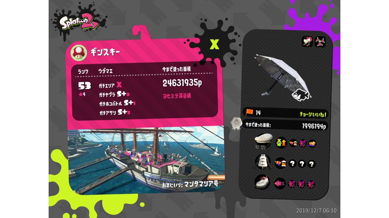 | Weapon | Sorella Brella ( Autobomb, Splat-Bomb Launcher) | ||||||||||||||||||||||||||||||||||