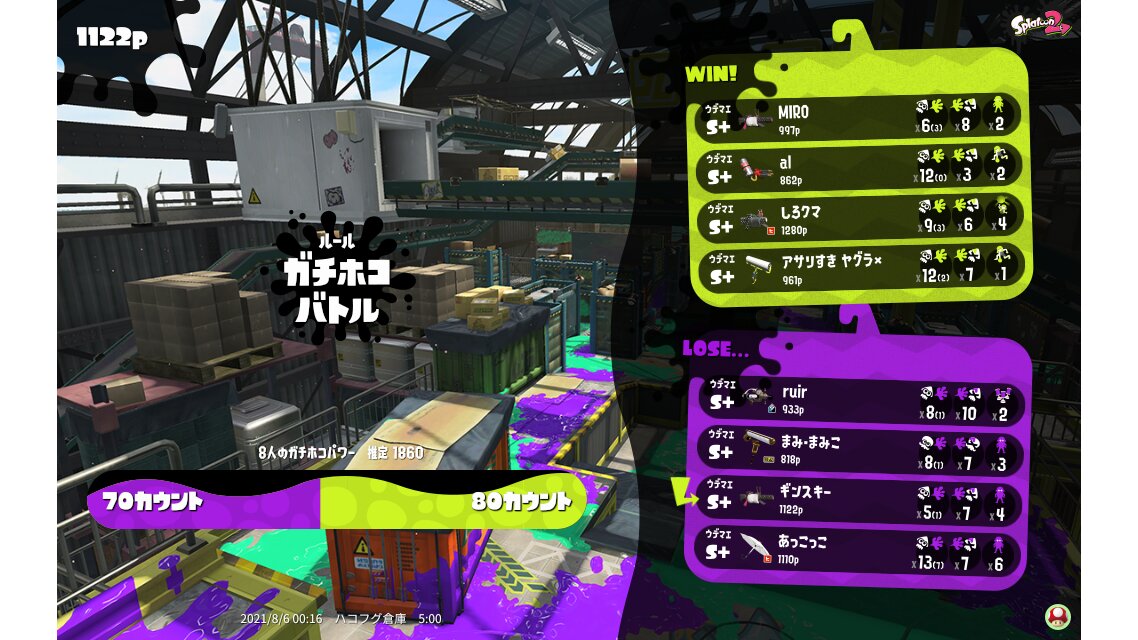 | Name | Weapon | Level | Rank | Inked | k+a/sp | k/d |
