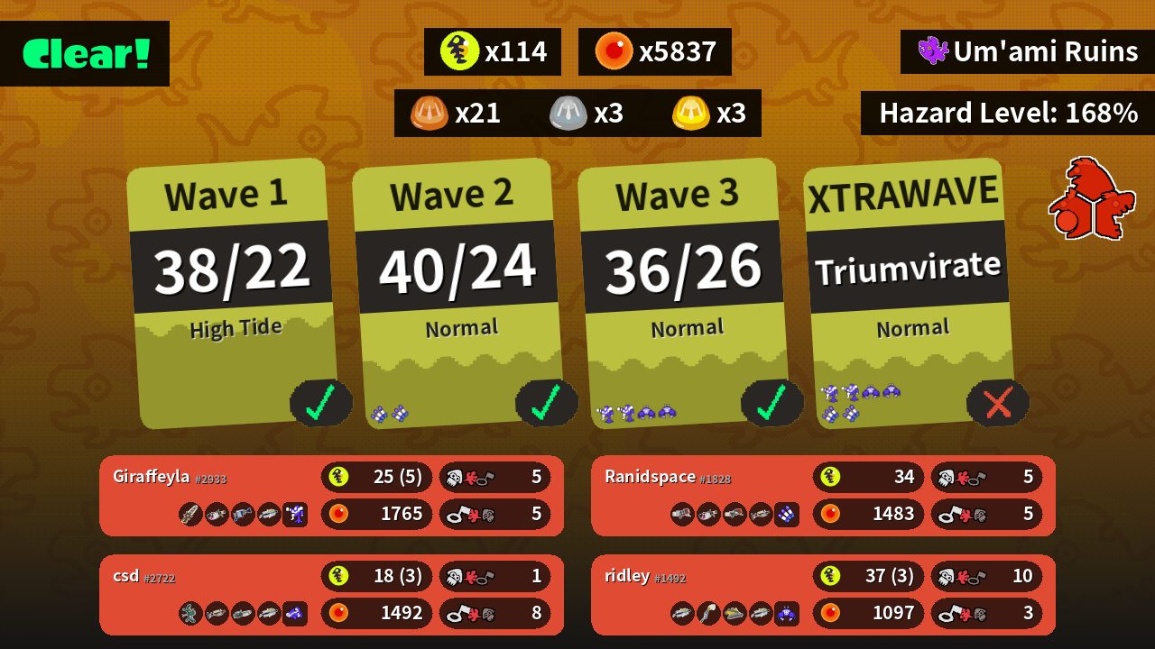 Boss Salmonid | 19 | 19 | 14 | 9 |