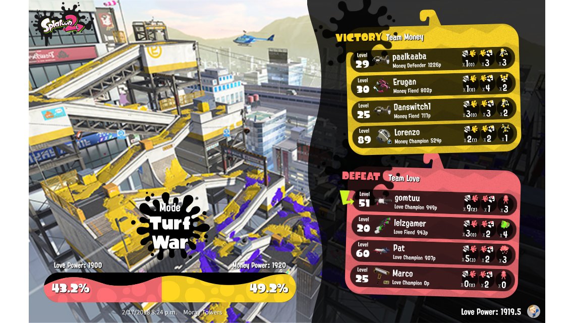 | Splatfest Power | 1,919.5 | ||||||||||||||||||||||||||||||||||