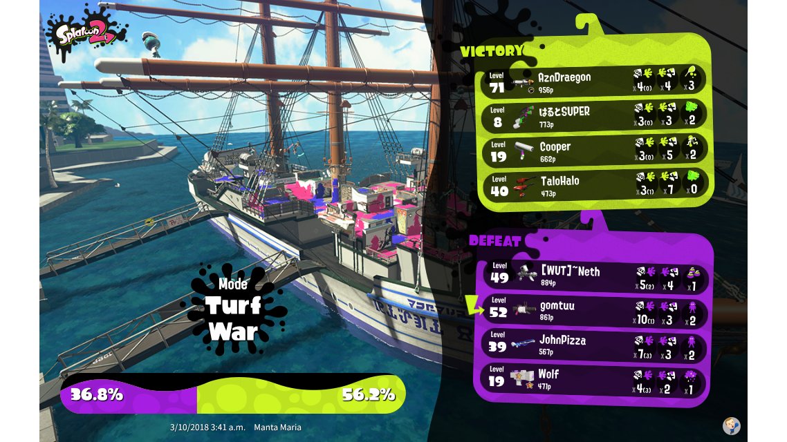 | Mode | Turf War - Regular Battle | ||||||||||||||||||||||||||||||||||