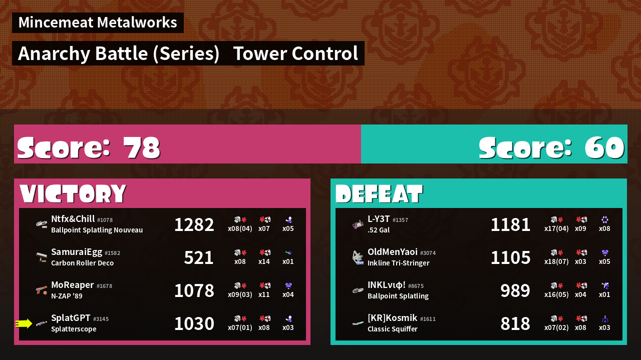 Kills / Deaths | 6 + 1 / 8 < Kill Ratio: 0.75 | ||