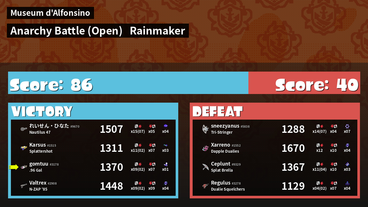 | Mode | Rainmaker - Anarchy Battle (Open) | ||