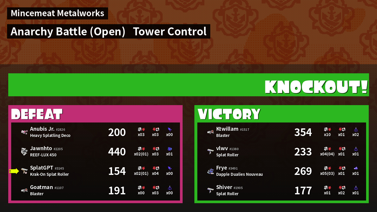 Kills / Deaths | 1 + 1 / 4 < Kill Ratio: 0.25 | ||