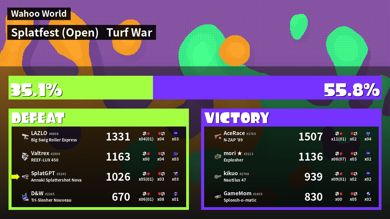 | Medals | #1 Popular Target #1 Splat Assister #1 Inkjet User | ||