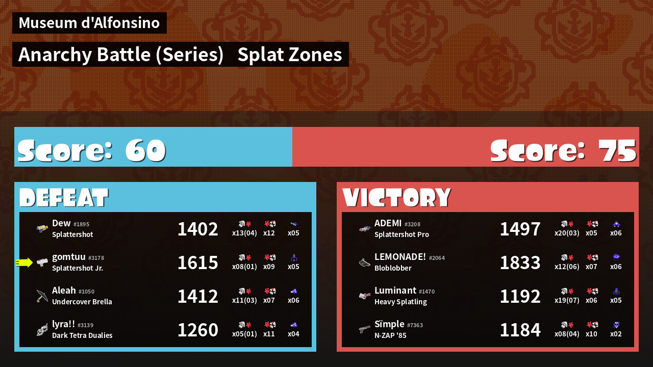 | Mode | Splat Zones - Anarchy Battle (Series) | ||||