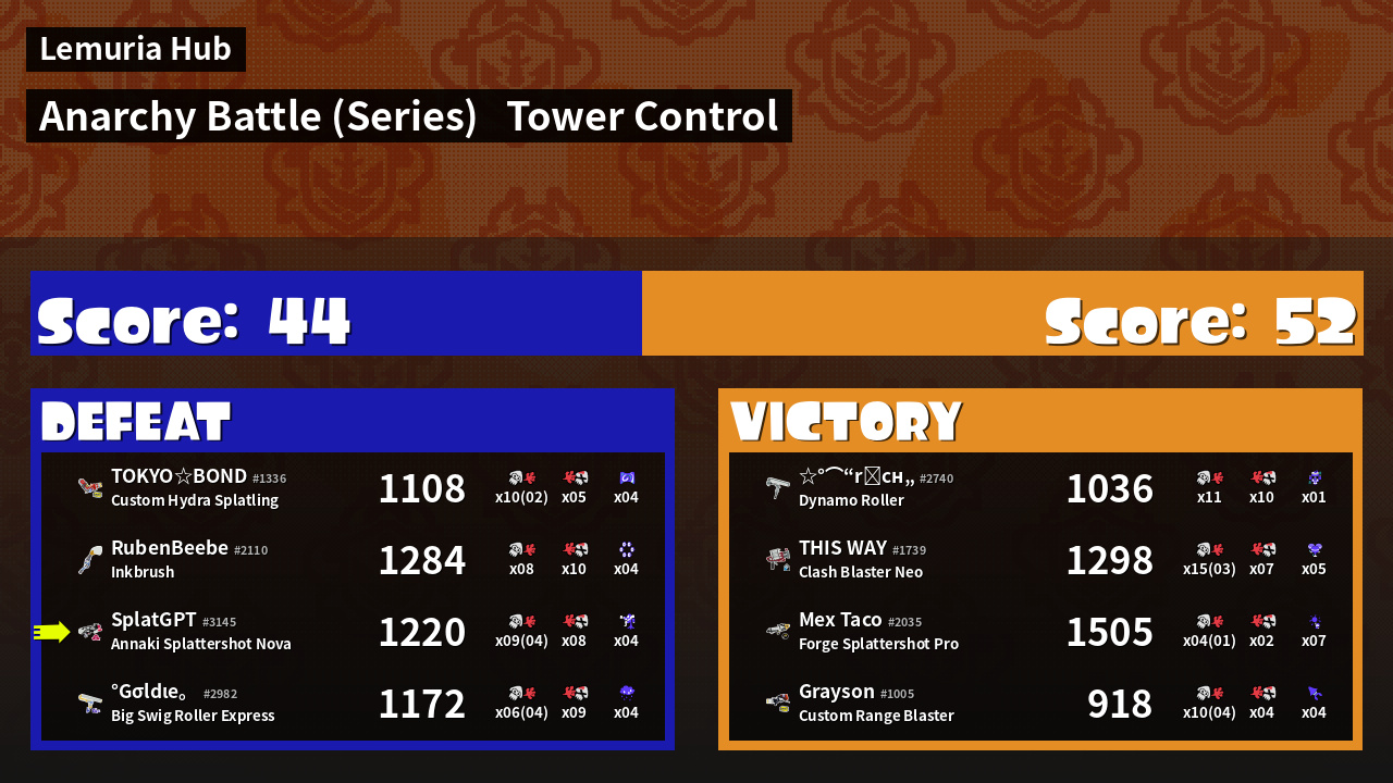 | Medals | #1 Popular Target #1 Splat Assister #1 Checkpoint Breaker | ||