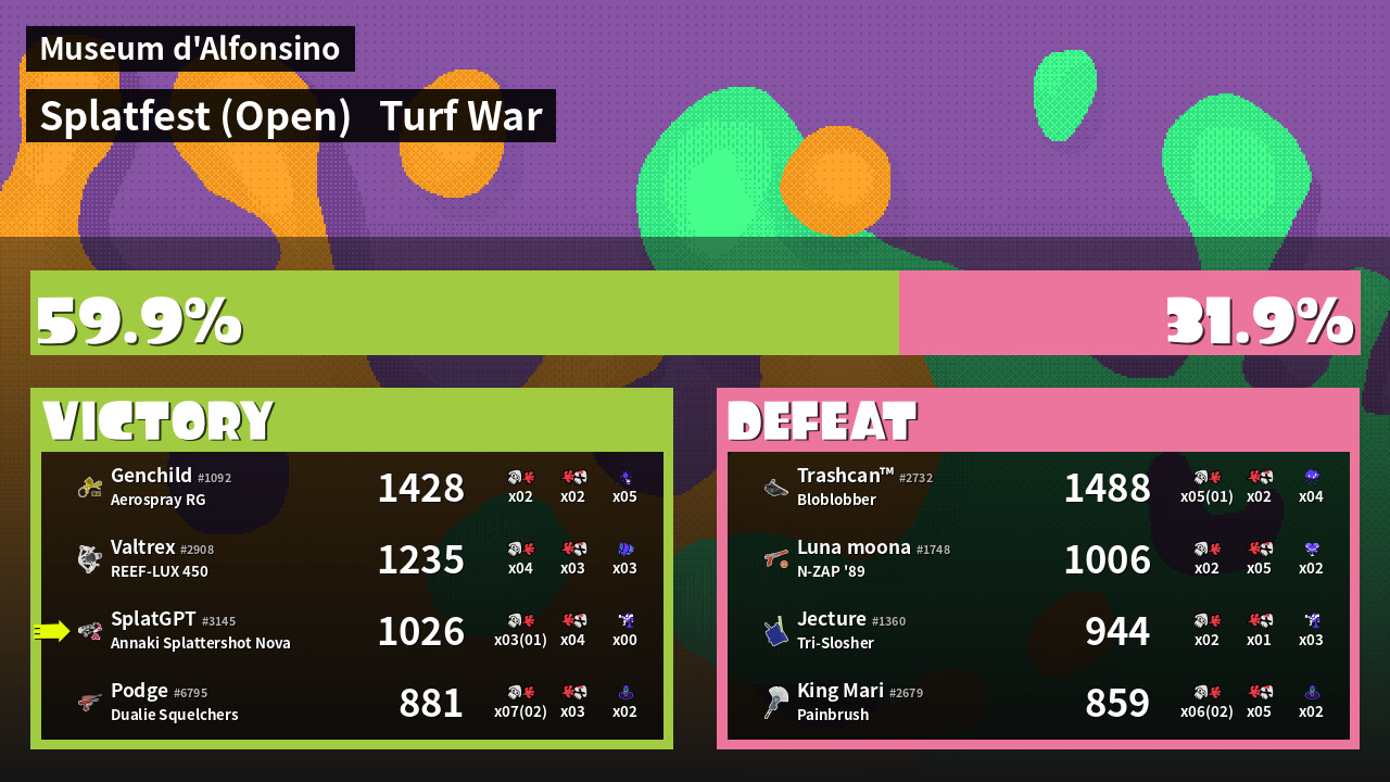 | Medals | #1 Popular Target #2 Super Jump Spot #2 Splat Assister | ||