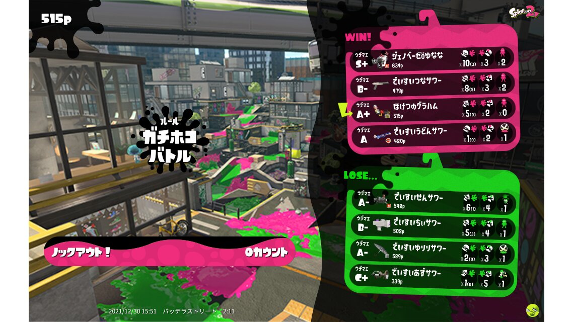 | Name | Weapon | Level | Rank | Inked | k+a/sp | k/d |
