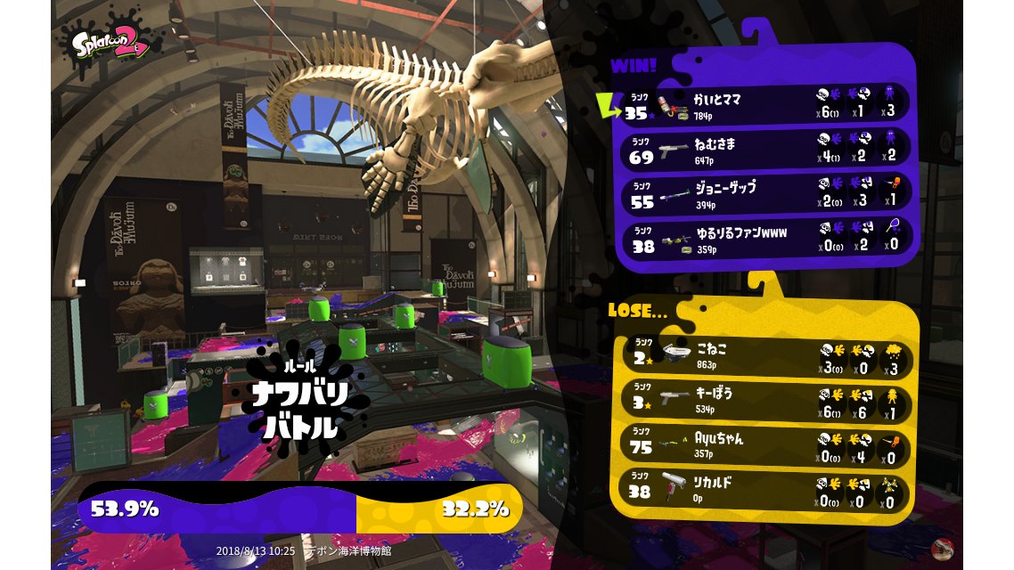 Results of ちくわ(ナワバト)'s Battle