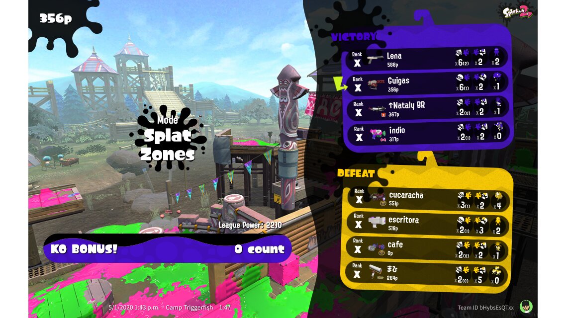 | Mode | Splat Zones - League Battle (Quad) | ||||||||||||||||||||||||||||||||||