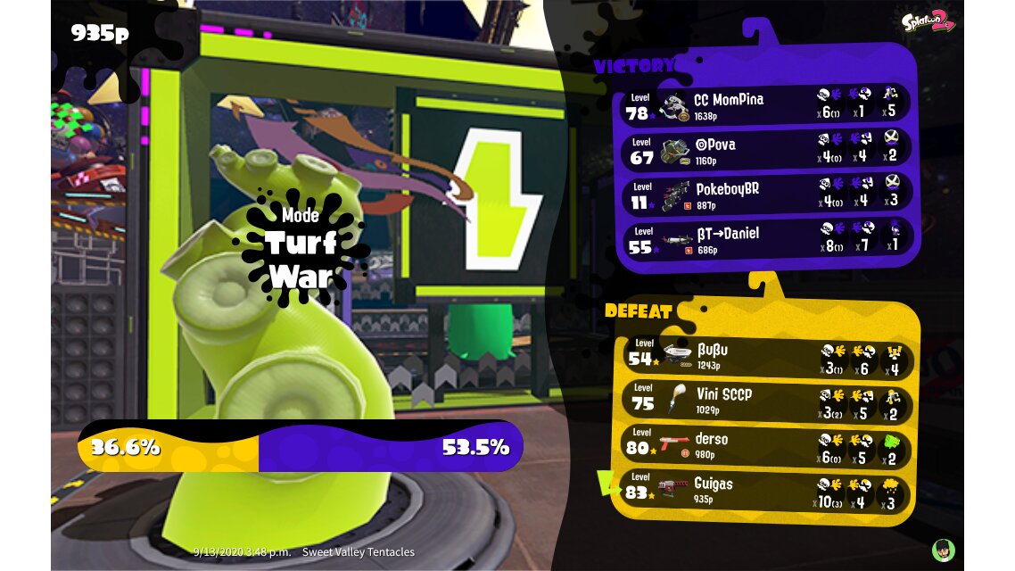 | Mode | Turf War - Private Battle | |||||||||||||||||||||||||||||||||||||