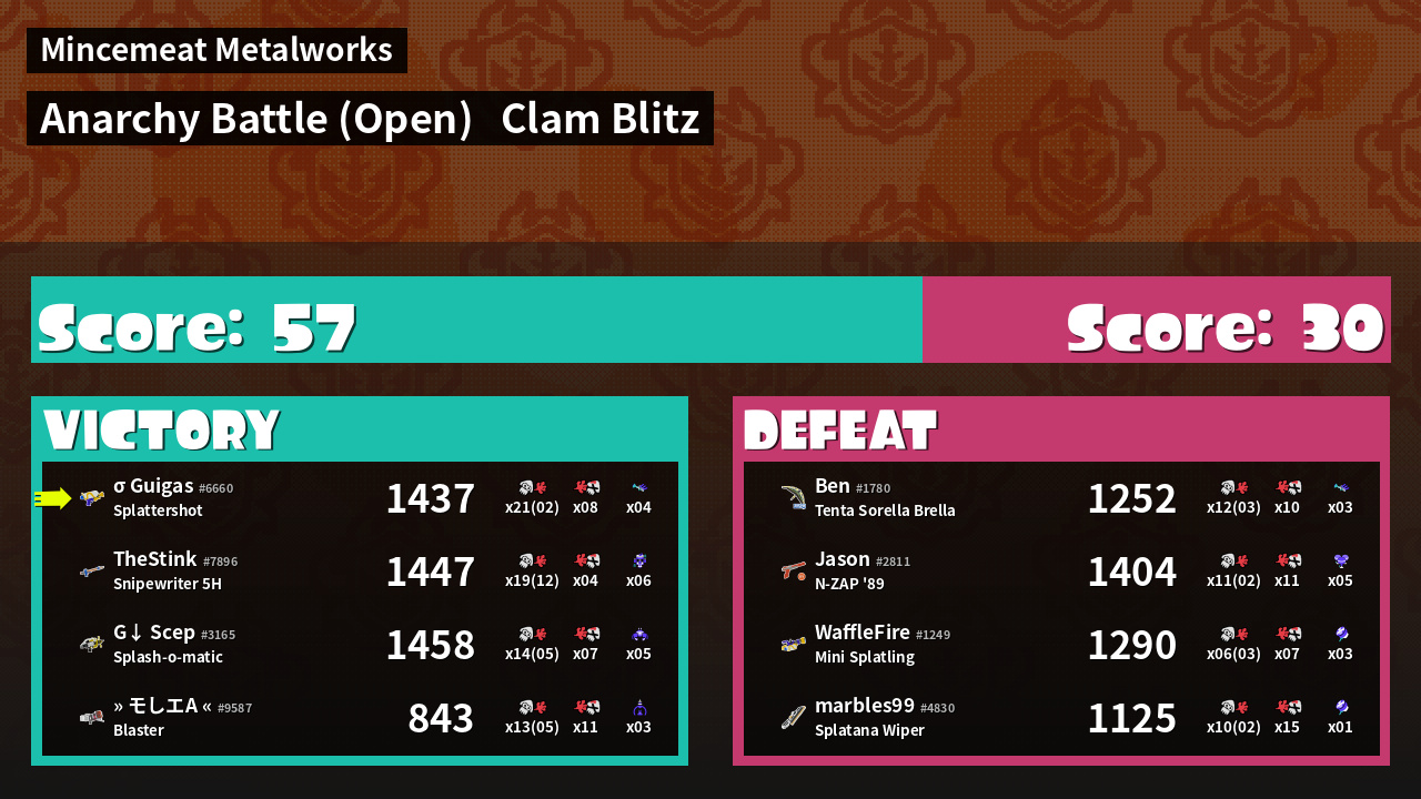 | Mode | Clam Blitz - Anarchy Battle (Open) | ||