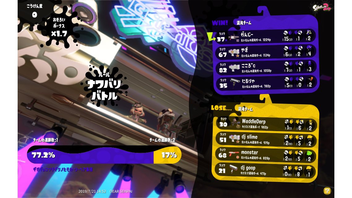 | Their team's splatfest power | 1,710 | |||||||||||||||||||||||||||||||||||||