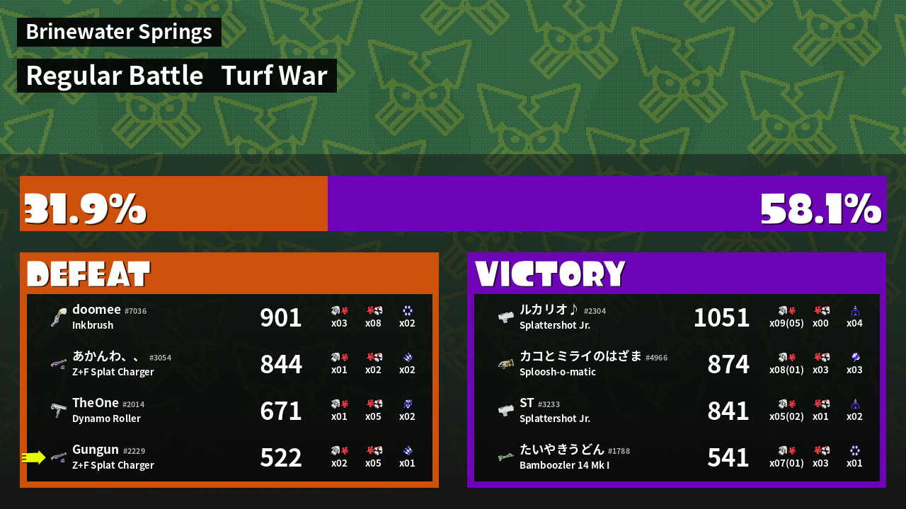 | Mode | Turf War - Regular Battle | ||