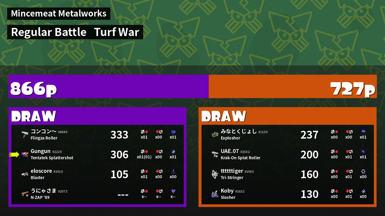 | Weapon | Tentatek Splattershot ( Splat Bomb / Triple Inkstrike) | ||