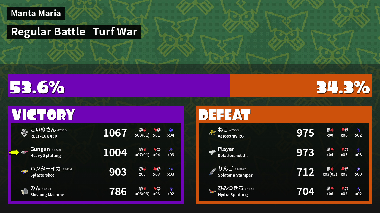 | Mode | Turf War - Regular Battle | ||