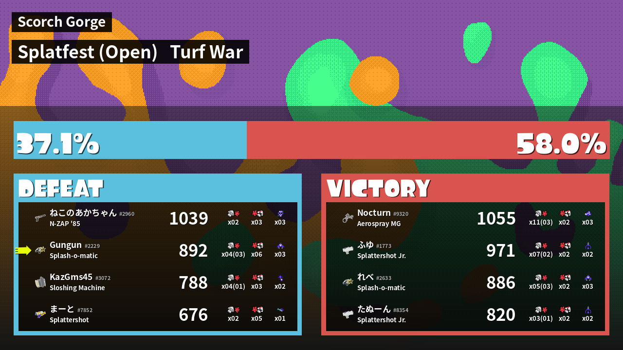 | Medals | #1 Overall Splatter #1 Enemy-Base Inker #1 Super Jump Spot | ||