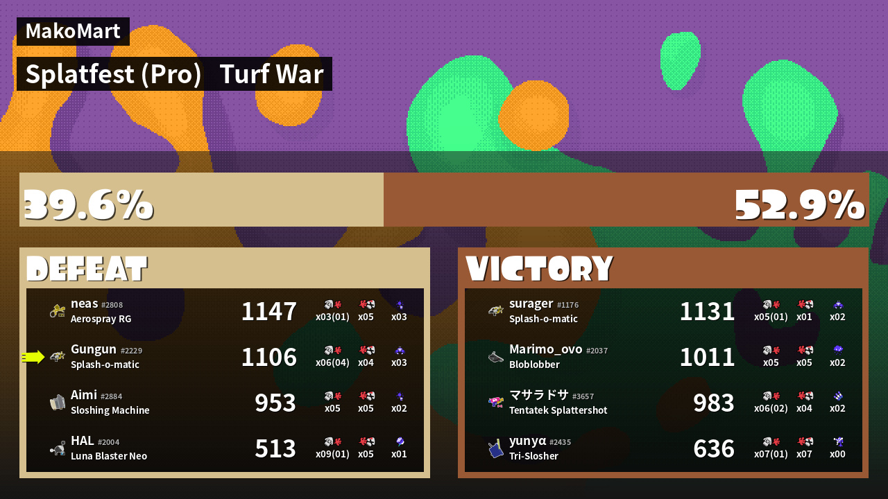 | Mode | Turf War - Splatfest (Pro) | ||