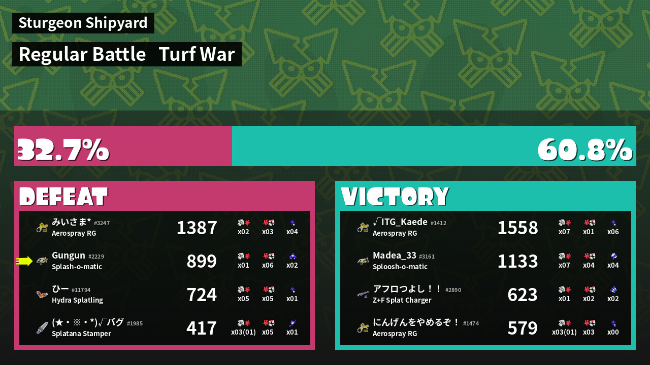 | Mode | Turf War - Regular Battle | ||
