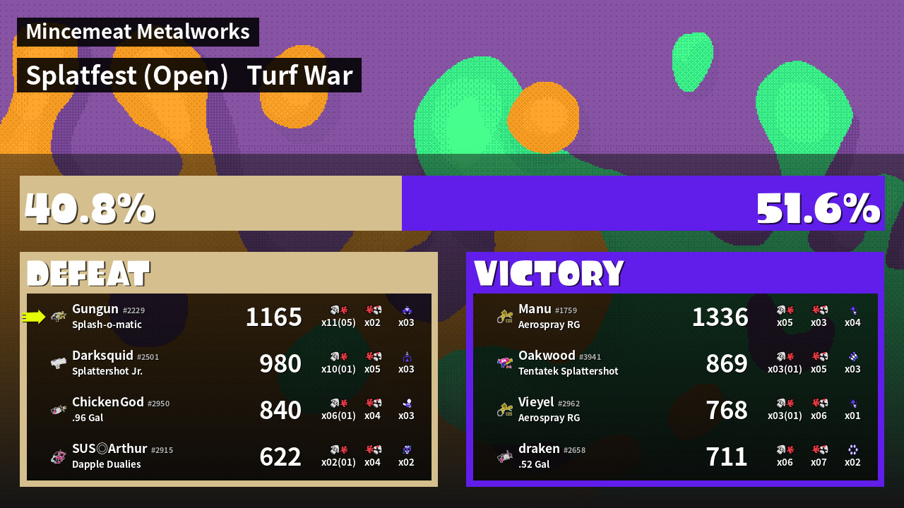 | Medals | #1 Overall Splatter #1 Turf Inker #1 Home-Base Inker | ||