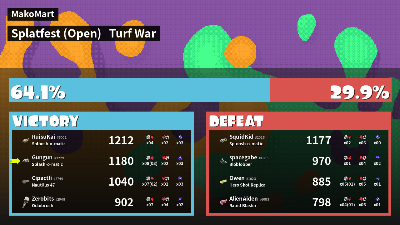 | Medals | #1 Overall Splatter #1 Splat Assister #1 Damage Taker | ||