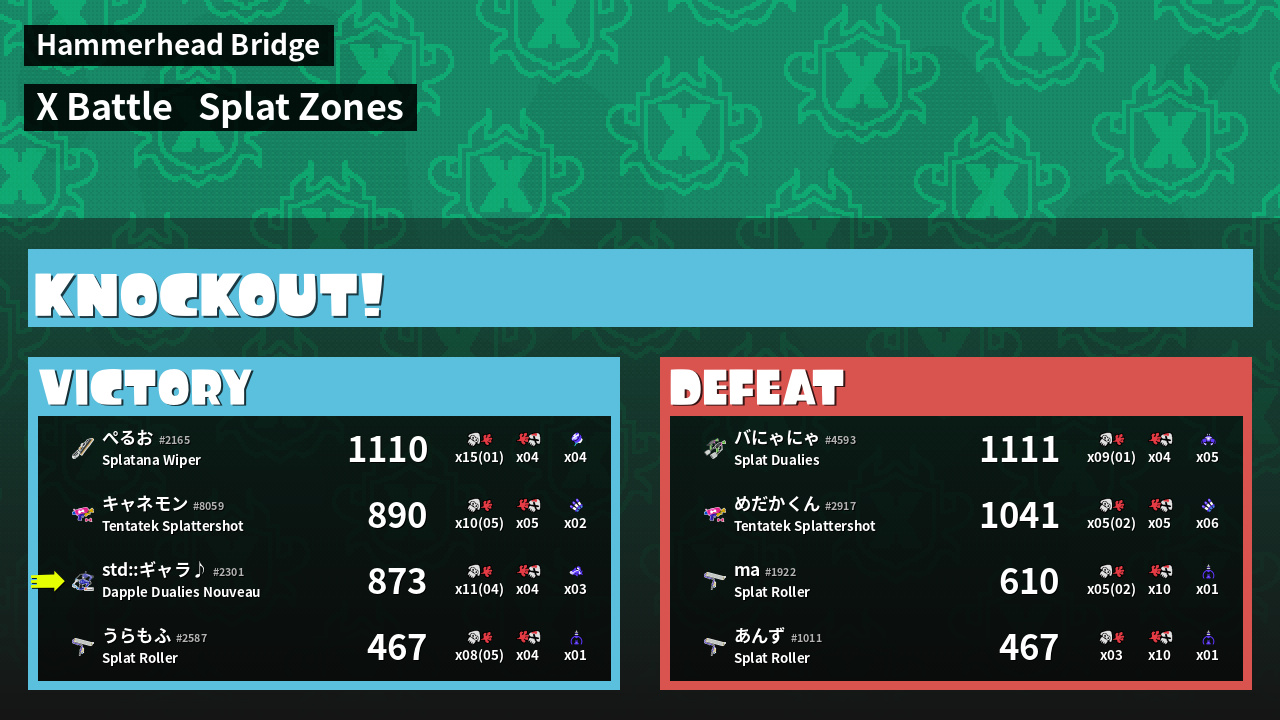 | Mode | Splat Zones - X Battle | ||