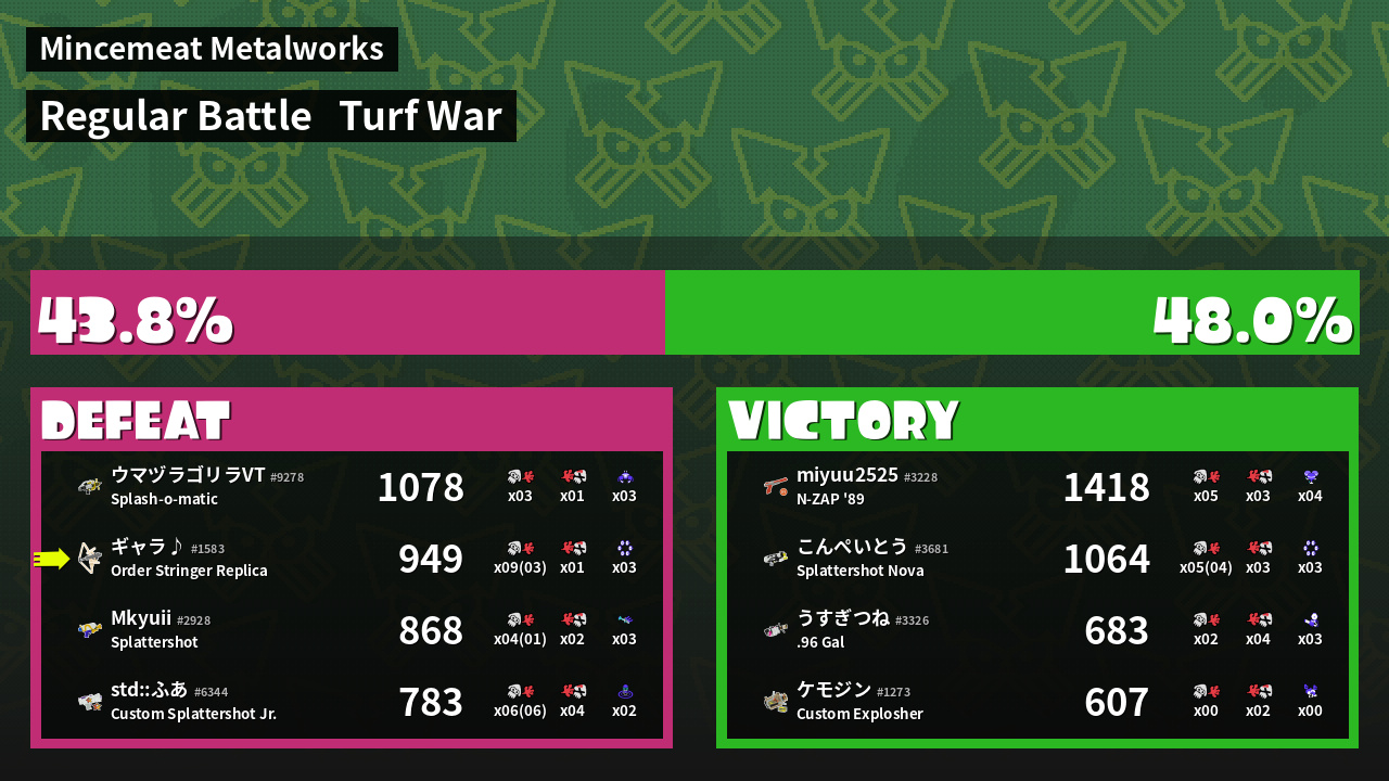 | Medals | #1 Overall Splatter #1 Popular Target #1 Enemy-Base Inker | ||