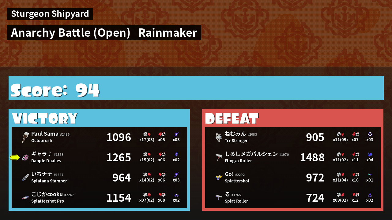 | Mode | Rainmaker - Anarchy Battle (Open) | ||||