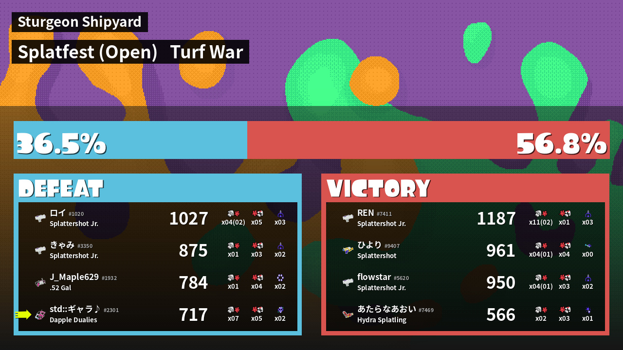 | Medals | #1 Overall Splatter #1 Enemy-Base Inker #1 Enemy Splatter | ||