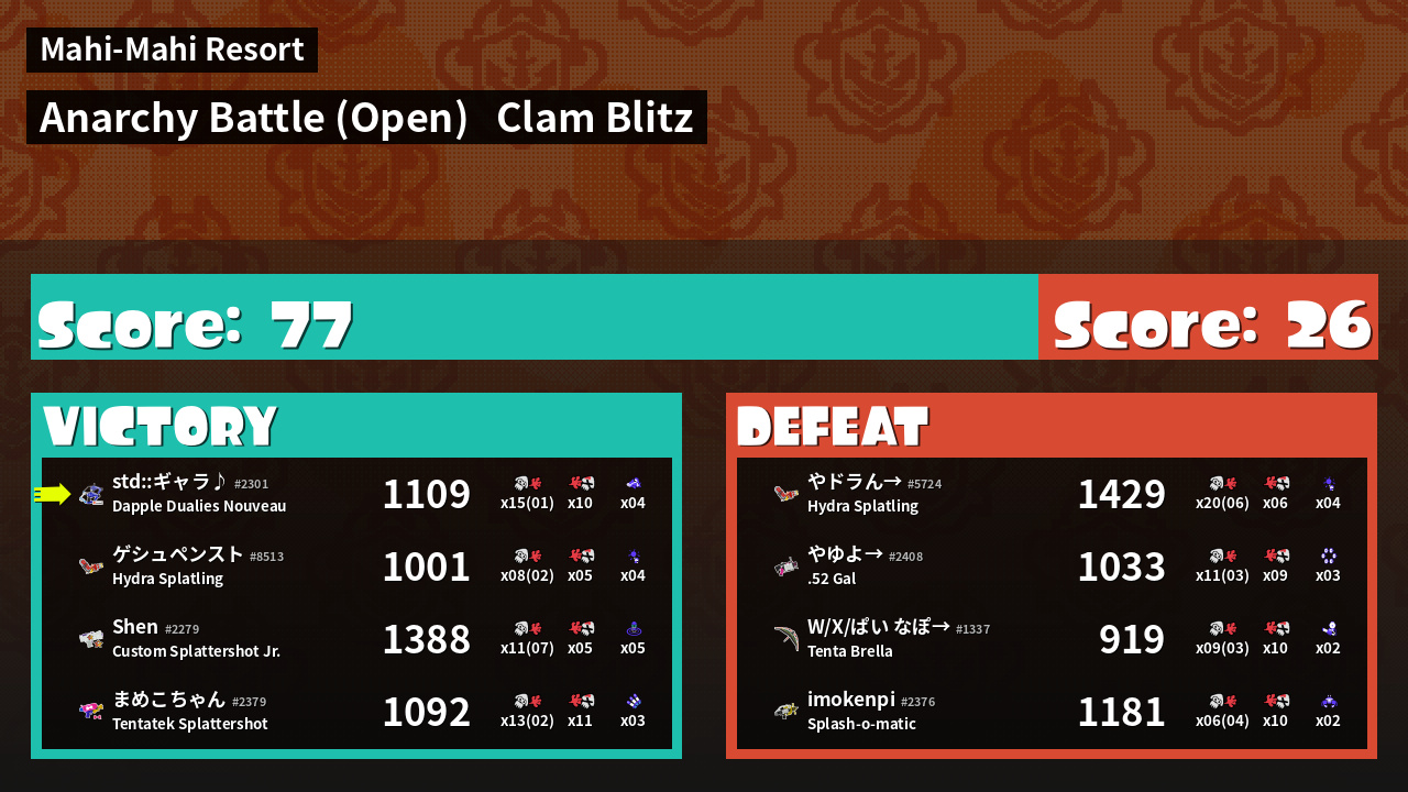 | Mode | Clam Blitz - Anarchy Battle (Open) | ||